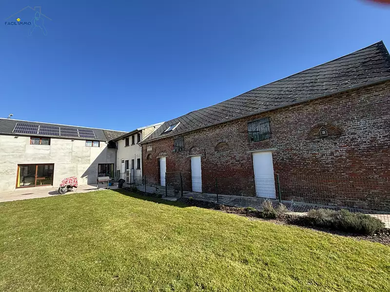 Secteur Doullens belle maison avec entrée sous porche dans bourg avec commerces offrant une cuisine aménagée et équipée,un salon lumineux donnant accés sur une terrasse,un vaste séjour,une chaufferie,une grande buanderie,un wc,un atelier.