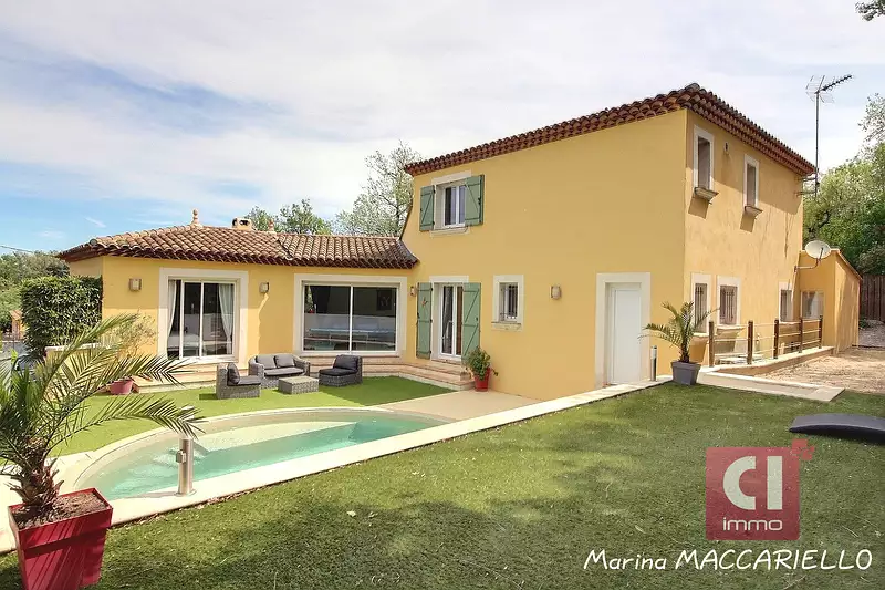 COUP DE COEUR ASSURÉ ! VILLA DE CHARME A FORCALQUEIRET -175 m² + DÉPENDANCES Nichée au calme d'un quartier résidentiel prisé de Forcalqueiret, cette magnifique villa de 6 pièces vous séduira par ses volumes généreux, ses prestations haut de gamme et son environnement paisible. Édifiée sur un terrain paysagé de plus de 1000m2 parfaitement entretenu, cette propriété de 175m² environ habitables en excellent état offre un cadre de vie confortable et convivial. Au rez-de-chaussée, vous découvrirez une vaste pièce à vivre traversante de près de 90m² comprenant un salon lumineux, une salle à manger et une cuisine américaine équipée, le tout ouvrant sur les extérieurs. Une suite parentale d'environ 20m² environ avec salle d'eau, WC et dressing complète ce niveau, ainsi qu'une buanderie et des WC invités. A l'étage, trois chambres spacieuses (environ 13 m² chacune) avec rangements se partagent une salle d'eau et un WC indépendant. A l'extérieur, deux belles terrasses dont une couverte de 30m² avec une cuisine d'été, un espace piscine intime à l'abri des regards, un terrain de pétanque, ainsi qu'une aire de stationnement pour 4 à 5 véhicules, viennent parfaire ce bien. Un garage fermé de 21m² environ est également à disposition ainsi qu'un atelier pouvant être aménagé selon vos envies (bureau, salle de sport, atelier d'artiste...) En annexes, vous profiterez d'un STUDIO indépendant de 20m² environ, idéal pour accueillir famille, amis ou pour un projet locatif. Une villa rare sur le secteur, alliant confort, élégance et fonctionnalité et en excellent état. Ce bien vous est présenté par Marina Maccariello, votre conseillère CI IMMO à Garéoult Marina MACCARIELLO (EI) Agent Commercial - Numéro RSAC : 813960473 - Draguignan.