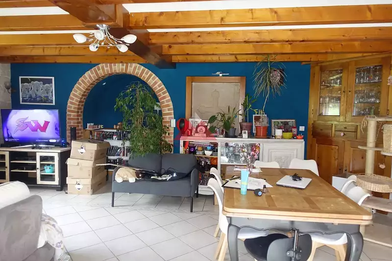 Ancienne ferme des années 1900 qui se compose au rez-de-chaussée d'une entrée, d'une cuisine équipée avec ilot central, d'un séjour avec rangement donnant accès au terrain, , d'une chambre, d'une salle de bains et d'un WC séparé. En complément une chaufferie, une cave et une grande grange aménageable sur deux niveaux.