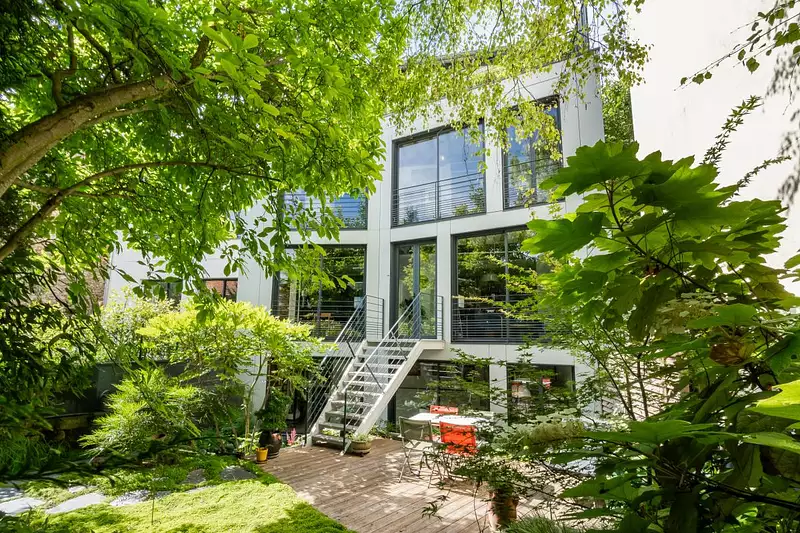 Les extérieurs se composent d’un très beau jardin paysagé avec une terrasse ainsi qu’une terrasse au 3ème étage.
