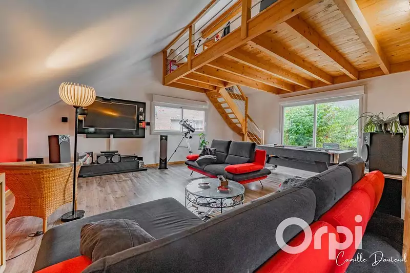Dans un cadre paisible et verdoyant, Orpi Les Voirons Immobilier vous invite à découvrir cette superbe maison de 175 m² habitables et 215 m2 utiles, érigée sur une parcelle de 1 000 m² entièrement clôturée et sécurisée.