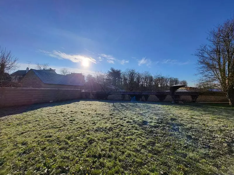 Extérieur : un jardin clos de murs, une terrasse et un petit abri.