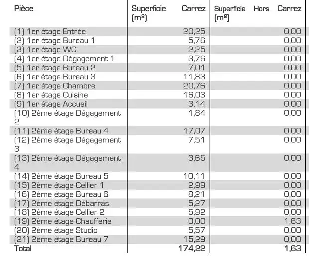 Prix de vente : 190 000 € | Prix au m² : 1 086 € / m² |
