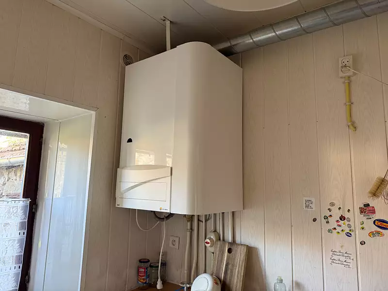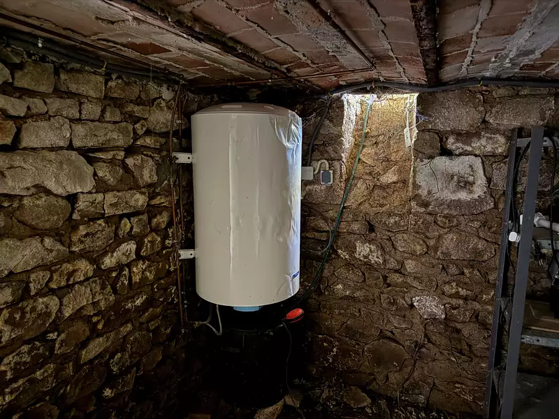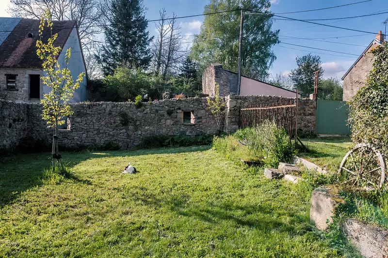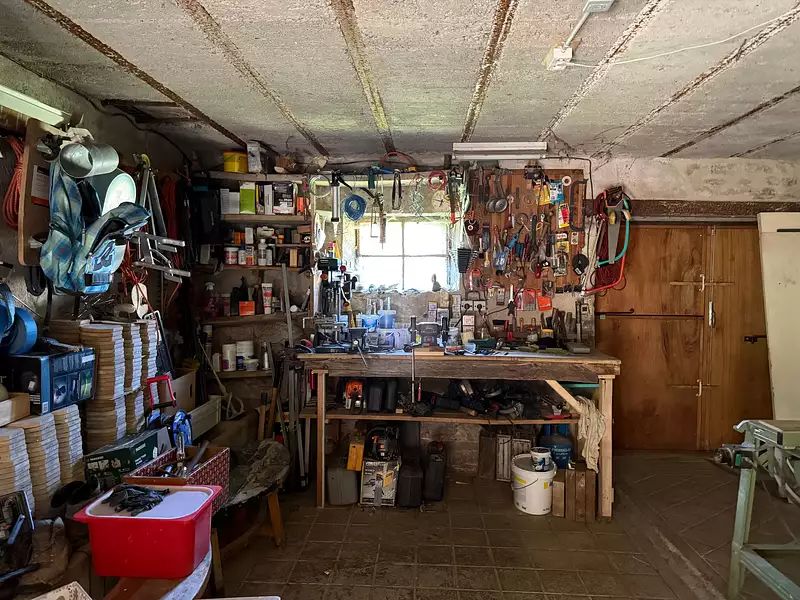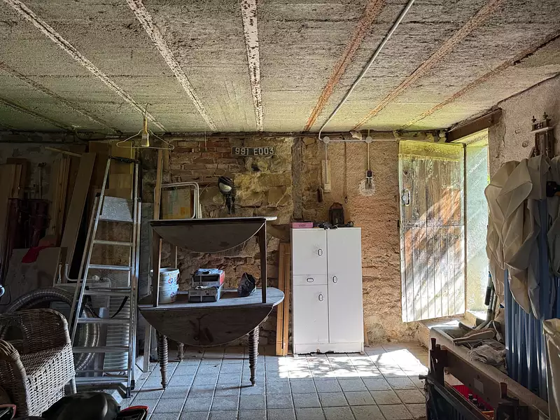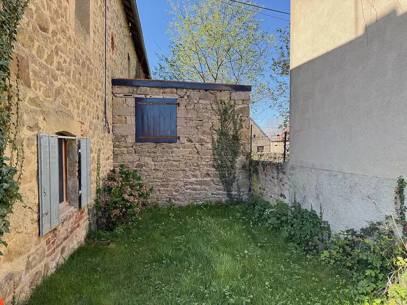 Auv 1179 : Bel ensemble : 2 maisons, 2 granges, terrain, belle vue Cet ensemble se trouve à distance de marche de Pionsat. Il se compose d’une maison principale avec grange attenante, d’une deuxième maison plus petite indépendante, d’une grange en face du petit chemin, et d’un bout de terrain avec les vestiges d’un ancien bâtiment. Grâce à la disposition des bâtiments et aux jardins partiellement entourés de murs, la discrétion est totale, même si l’ensemble se situe dans un hameau avec plusieurs habitations occupées. Les deux maisons sont habitables de suite, mais n’ont pas été entièrement modernisées : elles conservent encore cette bonne ambiance d’époque, telle qu’on les concevait autrefois. Ainsi, pour la petite maison, de nouvelles fenêtres sur mesure avec double vitrage sont prêtes à poser, mais les fenêtres d’origine sont toujours en place, tout simplement parce qu’elles sont si belles. Dans la grande maison, tout est haut et spacieux, c’était sans doute une maison construite à l’époque pour des personnes 'de la bonne société' de la région. Les quatre jardins descendent légèrement, mais ont été joliment aménagés en terrasses plates. Des ouvertures dans les haies et les petits murets donnent accès d’un espace à l’autre. La propriété entière fait 2400m2, avec à l’avant de la maison principale une très belle vue sur les terrains et, plus loin, au-dessus de Pionsat. Puits d’eau. La petite maison possède aussi un joli jardin clos de murs. Les deux maisons sont raccordées à un seul circuit pour l’électricité, l’eau et la fosse toutes eaux. La fosse est récente, mais sous-dimensionnée pour une occupation complète de toutes les chambres. Il est cependant facile de rajouter une fosse et d’agrandir le champ d’épandage. Chaque habitation est équipée d’un chauffe-eau électrique récent situé dans la cave correspondante. Dans la maison principale (surface intérieure de 70m2 par étage), il y a une porte d’entrée centrale menant à un couloir traversant. À gauche, la salle à manger (17,5m2, hauteur 2,75m) avec cheminée et poêle à bois, et la cuisine simple (6m2), qui contient également la chaudière pour le chauffage central au gaz. Il est possible d’agrandir la cuisine vers une pièce attenante (8m2) avec un accès vers l’arrière de la maison, en direction de la petite maison. À droite du couloir, on trouve le salon (18m2). À l’arrière, une buanderie (4,5m2) et une belle salle d’eau entièrement refaite (5,5m2) avec grande douche à l’italienne, WC suspendu et lavabo. Très réussi. À l’étage, un grand palier (10m2) avec un WC séparé en cours d’aménagement, deux petites chambres à l’arrière (11m2 chacune) et deux chambres à l’avant (18m2 chacune, hauteur sous plafond 2,60m) avec cette très belle vue. Grenier de 70m2 de surface au sol, toiture en ardoises et ardoises fibrociment. Attenante à la maison principale, une grange très spacieuse (50m2) fait actuellement office d’atelier. Elle dispose d’un sol en béton et de deux portes extérieures. À l’étage, on trouve un espace de loisirs très haut de faitage. La petite maison est entièrement construite ur caves et comprend une cuisine (12m2, hauteur 2,55m) avec des éléments posés, un salon chaleureux (12m2) avec cheminée et petit poêle à bois. Les carreaux d’origine sont toujours là, partiellement craquelés. À mi-hauteur de l’escalier en bois se trouve un demi-niveau avec la salle d’eau (5,5m2) comprenant WC, douche, lavabo et raccordement pour machine à laver. À l’étage, deux chambres (12 et 9m2, hauteur 2,50m) avec beaux planchers en chêne, grenier au-dessus. Petites dépendances. Très bel ensemble !Afficher plus