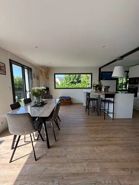 LE COUREGANT MAISON 175M2 AVEC VIE DE PLAIN PIED ET VUE MER A VENDRE ! LA VAGUE IMMOBILIÈRE ! EXCLUSIVITÉ ! Venez découvrir cette maison située à 200m de la plage et entièrement rénovée en 2021. Composé d'une entrée, une pièce à vivre ultra lumineuse de plus de 60m2 avec cuisine moderne équipée et aménagée ou l'on peux apprécier la vue mer, accès à la terrasse plein sud, une chambre et une salle d'eau, wc séparé. ( Possibilité d'entrée indépendante pour profession libérale ou location ). A l'étage un couloir distribue d'un côté deux chambres dont l'une avec dressing et pleine vue mer, une salle de bain avec douche et baignoire. De l'autre côté deux chambres avec une salle d'eau et un dressing, wc séparé. Vous disposez également d'un garage et d'une cave saine et isolé ainsi qu'un jardin clos sur un terrain de plus de 900m2 ( rare sur le secteur ). prix net vendeur 720000 euros et 5%ttc d'honoraire charge acquéreur Les informations sur les risques auxquels ce bien est exposé sont disponibles sur le site Géorisques : www.georisques.gouv.fr (5.00 % honoraires TTC à la charge de l'acquéreur.)