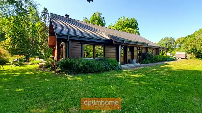 Aline Loock, Optimhome immobilier, a le plaisir de vous emmener à Rivière, son charmant village natal situé à 10 minutes d'Arras, pour découvrir cette splendide maison en bois massif HONKA, d'inspiration scandinave, construite en 1996 sur un terrain de plus de 3 000 m², exposé plein sud-ouest et sans vis-à-vis. Un bien rare, associant chaleur du bois, volumes généreux et confort moderne, dans un environnement préservé et verdoyant.