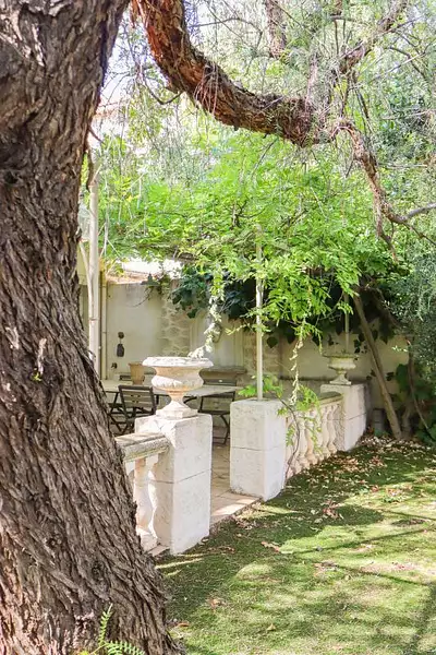 À l'arrière, un patio intimiste, et à l'avant une terrasse ombragée par un majestueux poivrier quinquagénaire qui confère un charme unique à la propriété.