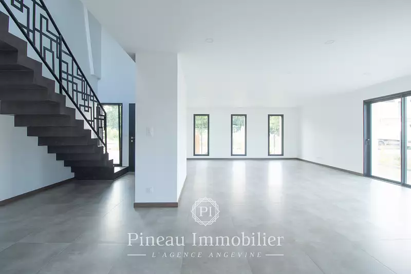 Maison d'architecte - 6 pièces - 4 chambres - 176 m² - Jardin et Garage A quelques minutes à pied des commerces et des transports en commun, découvrez cette superbe maison d'architecte alliant prestations haut de gamme et confort moderne. D'une surface de 176 m², cette propriété séduit par son élégance épurée, ses matériaux de qualité et ses volumes lumineux. Au rez-de-chaussée, l'entrée avec placards de rangement dessert une vaste pièce de vie baignée de lumière. Vous y trouverez également une cuisine ouverte, aménagée et équipée avec îlot central, une suite parentale comprenant un dressing et une salle d'eau privative, des WC indépendants, ainsi qu'un cellier et un garage. A l'étage, une spacieuse mezzanine offre un bel espace supplémentaire. Elle mène à trois chambres, dont deux disposent de leur propre dressing. Une salle de bains avec baignoire et WC complète cet étage. A l'extérieur, vous serez séduit par un jardin aménagés et soignés et une terrasse, idéale pour vos moments de détente. L'environnement est calme, résidentiel et parfaitement adapté à une vie de famille. Cette maison offre de belles prestations : volets roulants à fermeture centralisée, climatisation réversible, garage motorisé, carrelé et isolé, extérieurs ainsi qu'une excellente performance énergétique. Un bien rare aux portes d'Angers. N'attendez plus pour programmer une visite ! Les informations sur les risques auxquels ce bien est exposé sont disponibles sur le site Géorisques : www.georisques.gouv.fr (3.75 % honoraires TTC à la charge de l'acquéreur.) Louann RICOU (EI) Agent Commercial - Numéro RSAC : 930631932 - ANGERS.