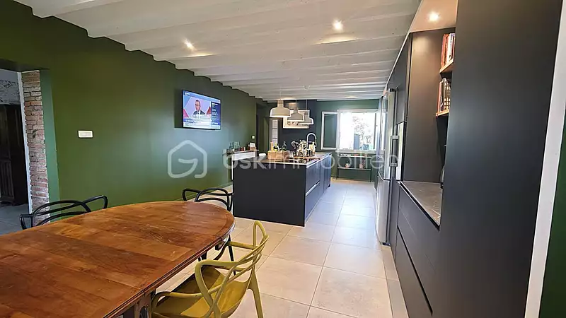 Au rez-de-chaussée, une entrée spacieuse vous conduit vers une superbe cuisine de 36 m², entièrement rénovée, aménagée et équipée avec de l'électroménager haut de gamme, idéale pour partager de beaux moments en famille ou entre amis.
