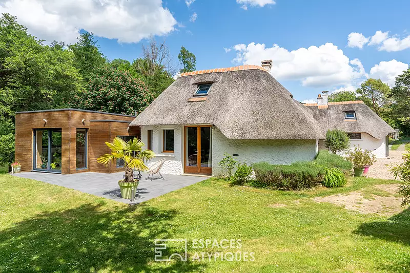 Située dans le charmant village de Ferrière-sur-Beaulieu, à seulement 5 minutes de Loches, cette superbe chaumière et son élégante extension contemporaine développent 176 m² habitables, nichés au coeur d'une magnifique parcelle paysagée de plus d'un hectare. Le style inimitable de la véritable chaumière, avec sa toiture en chaume, confère à la maison un charme unique, enveloppé dans un écrin de verdure traversé par un ruisseau. La quasi-totalité de la surface est de plain-pied. La partie chaumière abrite une grande salle à manger avec mezzanine, une cuisine séparée, ainsi qu'un espace nuit composé de trois belles chambres et d'une vaste salle de bain. La superbe extension contemporaine offre quant à elle un grand salon baigné de lumière, agrémenté d'un poêle à bois. Un escalier mène à une grande suite parentale avec dressing et salle de bain attenante. Plusieurs terrasses permettent de profiter de superbes points de vue sur le ruisseau, le plan d'eau, le verger ou encore la grande piscine chauffée. Deux box pour chevaux avec un vaste espace dédié, un garage attenant à la maison ainsi qu'un atelier avec cave complètent ce bien rare, situé à seulement 40 minutes de Tours et de sa gare TGV, et à 5 minutes de la cité royale de Loches. Classe énergie : D / Classe climat : D Estimation annuelle du coût de l'énergie pour un usage standard, selon les prix moyens des années 2021, 2022 et 2023 : entre 3 100 euros et 4 200 euros. Contact : Julien Lanneau ? 06 31 50 29 86 Agent commercial RSAC 2020 00171 Tours Les honoraires sont à la charge du vendeur. Les informations sur les risques auxquels ce bien est exposé sont disponibles sur le site Géorisques : www.georisques.gouv.fr Julien Lanneau (EI) Agent Commercial - Numéro RSAC : 2020 AC 00171 - Tours.