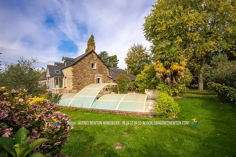 Une Maison Familiale de Charme en Normandie, Près de Pontorson. Dans la Baie du Mont Saint Michel. S'il vous plait voir la video. Présentation Cette impressionnante maison familiale est indépendante et située dans la pittoresque Baie du Mont-Saint-Michel, alliant harmonieusement charme traditionnel et confort moderne. D'une surface habitable généreuse de 176 m², la propriété comprend sept pièces principales, dont quatre chambres. Caractéristiques principales -Piscine couverte -Magnifique jardin d'environ 1 900 m², agrémenté d'arbres remarquables -Deux garages offrant un grand parking et un espace de rangement -Puits avec pompe - Allée avec portail électrique - Classe énergétique : DPE C - Frais d'agence inclus dans le prix de 350 000 euros Hébergement Rez-de-chaussée En entrant par le porche couvert, vous découvrirez un spacieux séjour-salle à manger, qui mène au couloir central. A côté, une cuisine bien équipée et un autre salon créent un espace polyvalent et convivial pour la vie de famille. Le rez-de-chaussée abrite également deux chambres, une salle de bains, des WC, des rangements pratiques et un accès direct à l'un des garages. Premier étage A l'étage, la propriété offre deux chambres supplémentaires, complétées par une salle de bains et des WC séparés. Un grenier, situé au-dessus et sur un côté. Potentiel supplémentaire L'ensemble de la propriété repose sur un sous-sol, actuellement utilisé comme garage et débarras. Cet espace généreux offre d'intéressantes possibilités d'aménagement en logement supplémentaire, ou pour une utilisation en gîte ou chambre d'hôtes, sous réserve des autorisations nécessaires. Emplacement Idéalement située dans la Baie du Mont-Saint-Michel, à proximité de Pontorson (à seulement huit minutes en voiture), du Mont-Saint-Michel et de la côte (à vingt minutes), et à seulement dix minutes de l'autoroute A84, offrant ainsi d'excellentes liaisons de transport. Notes historiques C'est une belle et solide propriété au riche passé historique, comme l'illustre la photo de famille des années 1900 jointe. Contactez-moi : pour visiter @alisonagencenewton Si vous avez un bien à vendre, n'hésitez pas à me contacter. Je vends à une clientèle étrangère et française. (5.11 % honoraires TTC à la charge de l'acquéreur.) Alison SHORE (EI) Agent Commercial - Numéro RSAC : 502 977 705 - ST MALO.