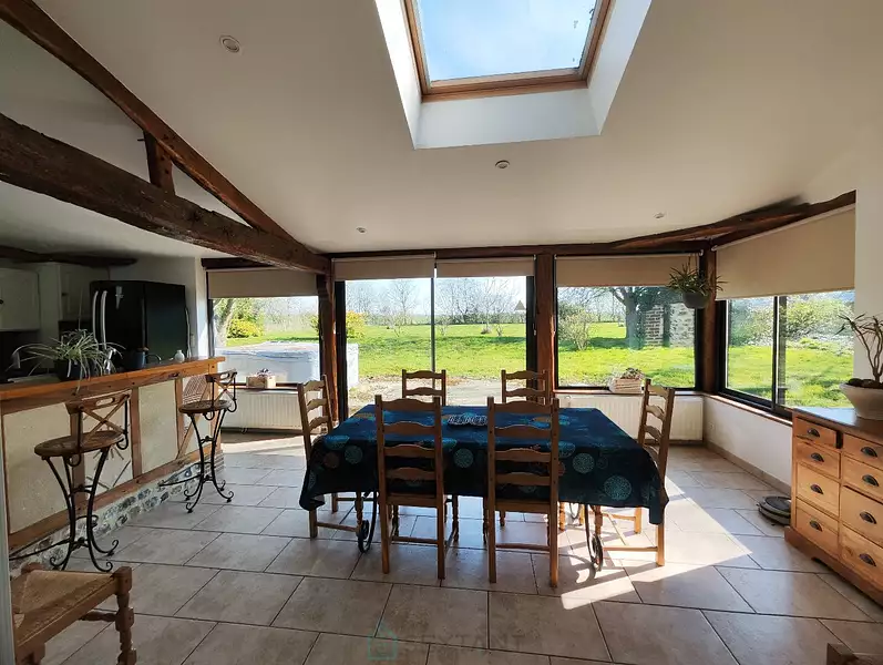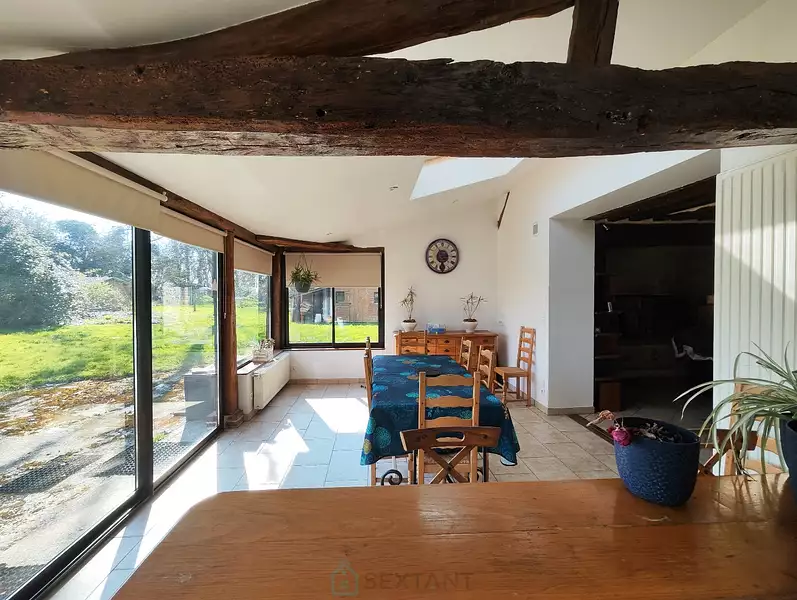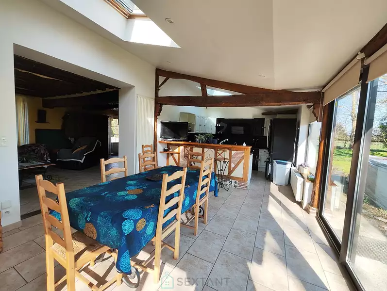 20 min Sud de Lisieux et 15 min de Bernay, à 2 pas d'Orbec, petite ville avec tous commerces, écoles et collèges, belle propriété composée : - d'une maison avec prestations de qualité sur une surface de 177 m² habitables dont cuisine/salle à manger de 40m² très lumineuse, 6 chambres, salle d'eau, salle de bains, pompe à chaleur avec relais gaz, consommation chauffage très peu élevé, menuiserie en aluminium. - un bâitment en colombages à rénover avec possibilité d'aménager une maison d'habitation avec accès indépendant, idéal projet de gîte. - Un bâtiment de 530 m² (idéal artisan) avec beaux volumes de stockage et de garage. L'ensemble de cette propriété s'étend sur un terrain de 2.25 hectares avec agréable partie aménagée en parc arboré et autre partie en terrain agricole. La propriété peut être divisée selon projet car des accès indépendants pour chaques biens sont existants. Prix TTC et Honoraires à charge vendeur TTC Agent commercial Sextant France - Déborah Dutot agent basé à COURTONNE LES DEUX EGLISES - 07 80 31 17 09 - Plus d'informations sur réf. 24853Afficher plus