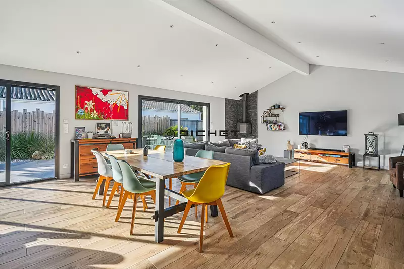 Située à Saint-Jean-d'Illac (33127), A seulement 25min du bassin et de Bordeaux, maison contemporaine construite en 2018 de 177 m² sur une parcelle de 741m². Idéalement située dans un quartier pavillonnaire , offre à ses nouveaux propriétaires un cadre de vie agréable tout en étant proche des commodités telles que les écoles, les commerces et les transports en commun. Au rez-de-chaussée vous découvrirez une entrée, un vaste salon séjour cathédrale avec cheminée une cuisine aménagée et équipée d'environ 71m2 cellier . Une suite parentale avec un dressing, et une salle de bains, WC séparé et un bureau. A l'étage, un palier qui dessert trois chambres, une salle bains et un WC séparé. A l'extérieur, une cuisine d'été, une piscine avec son pool house avec un généreuse terrasse en L. Un local vélo attenant à la maison d'environ 22m2.