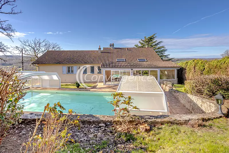 Située dans la commune de Saint Victurnien, cette maison spacieuse de 177 m2 habitables offre un cadre de vie agréable et lumineux. Édifiée sur un sous sol complet, la maison se compose d'une entrée accueillante, un grand salon-séjour avec cheminée ouvrant sur une agréable véranda chauffée de 38 m2 avec vue sur l'espace piscine, une cuisine indépendante avec cellier attenant, 3 chambres, une salle de bains avec douche et baignoire, un WC avec lave mains. Au sous-sol, un espace habitable composé d'une chambre avec salle d'eau et wc privatif ainsi qu'une pièce bureau ou chambre supplémentaire idéale pour des ados! Une buanderie, une pièce indépendante, une cave complète ce bien. A l'extérieur, un bel espace piscine avec dôme et pool house vous attend pour des moments de détente en famille ou entre amis. Le chauffage est assuré par une chaudière à gaz, et des travaux d'isolation ont été réalisés en 2021, garantissant une performance énergétique optimisée. Pour plus d'informations ou pour planifier une visite n'hésitez pas à nous contacter !