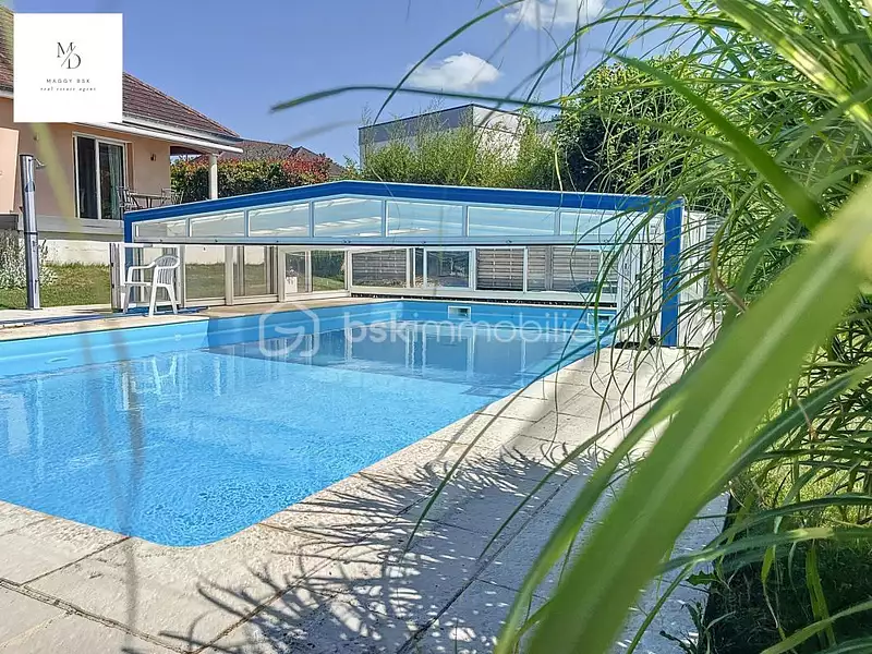 Piscine 10/5 avec son dôme solaire, ses terrasses, son jardin de 2000m2 entretenu et sans vis-à-vis, clôturé, équipé d'un portillon et portail motorisé.