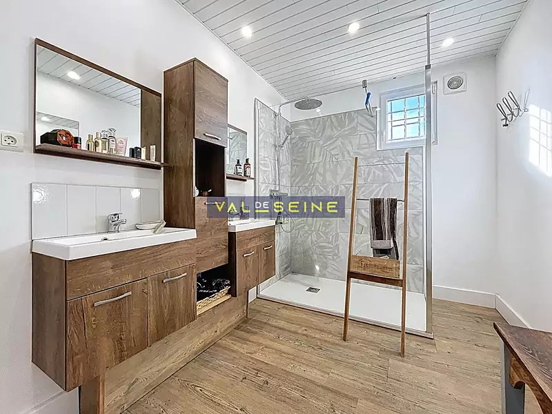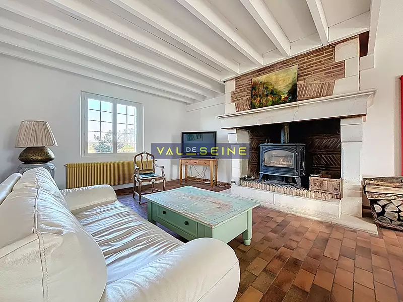 EN EXCLUSIVITE VAL DE SEINE vous propose cette grande maison familiale édifiée sur un terrain de 1500m². Vous découvrirez au rez de chaussée une entrée, un séjour salon avec mezzanine d'env. 57m² avec une belle cheminée Magnan, une véranda, une cuisine équipée, une chambre avec sa salle de douches, wc, une buanderie. A l'étage une grande mezzanine de 14m² faisant office de bureau, trois chambres et salle de bains, wc. Le grand sous sol accueille un véhicule, une chaufferie, un atelier, deux pièces ainsi qu'une cave. Une dépendance Les ++ : Au calme, beau terrain, belle pièce de vie, Les informations sur les risques auxquels ce bien est exposé sont disponibles sur le site géorisques : www.georisques.gouv.fr Prix de vente honoraires agence inclus : 279000 euros Prix de vente hors honoraires : 270000 euros Honoraires à la charge de l'acquéreur : 9000 euros TTC (3.33%) (3.33 % honoraires TTC à la charge de l'acquéreur.)Afficher plus