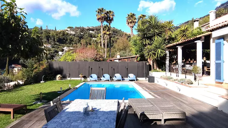 Votre agence vous propose, dans un domaine privé sécurisé au calme à cinq minutes de la mairie de Menton (06500). Une magnifique villa individuelle de 6 pièces en parfait état avec cuisine d'été, une piscine privée, un garage, 2 places de parking, nombreuses place de stationnements invitées dans le domaine, situé dans un écrin de verdure d'oliviers et de pins, la villa est composée: un séjour haut sous- plafond avec cheminée, une salle à manger, une belle cuisine séparée, 4 chambres avec leur salle de bains/WC dont 3 avec accès terrasse, un bureau, une buanderie, toilette invitée. Terrain de plus de 1000 m² ensoleillé avec une vue dégagée. DPE en attente, honoraires agence à la charge du vendeur.