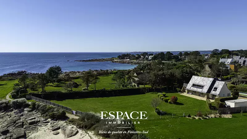 Réalisez votre rêve au bord de l'eau ! L'agence ESPACE IMMOBILIER a le plaisir de vous présenter, en première ligne sur la Presqu'île du Cabellou, cette maison offrant une superbe vue sur la mer et un accès direct à une plage de sable fin depuis la propriété. Imaginez-vous réveiller chaque matin au son des vagues, respirer l'air marin et profiter de la tranquillité de cet endroit. Nichée sur une parcelle de terrain close de 2 501 m², elle dévoile un cadre de vie exceptionnel et paisible et se distingue par sa belle architecture, alliant modernité et charme local. Elle offre une surface habitable de 177 m² répartie sur deux niveaux à rafraîchir et aménager à votre image, comprenant une entrée, un salon-séjour avec un poêle à granulés, une cuisine indépendante, cinq chambres, quatre salles de bains / salles de douche, une pièce de rangement, un garage et une cave à vin. A l'extérieur, vous profiterez d'une grande terrasse ensoleillée, d'un garage indépendant offrant un espace de rangement supplémentaire et d'un parking . Pour plus de détails, rencontrons-nous afin de vous permettre d'en découvrir davantage. Ne manquez pas l'opportunité d'acquérir cette perle rare située dans l'un des endroits les plus prisés de la côte Finistérienne. Découvrez-la avec l'agence ESPACE IMMOBILIER, spécialiste des beaux appartements et des belles maisons en Finistère-Sud. Les informations sur les risques auxquels ce bien est exposé sont disponibles sur le site Géorisques : [[www.georisques.gouv.fr](http://www.georisques.gouv.fr)] (3.81 % honoraires TTC à la charge de l'acquéreur.)