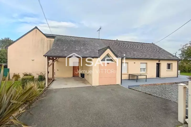 En campagne du Bourgneuf-la-Forêt, à 2km du centre bourg, à 20 minutes de Laval, Vitré et Fougères, découvrez cette maison construite en 2001 qui allie confort moderne, volumes généreux et cadre verdoyant.