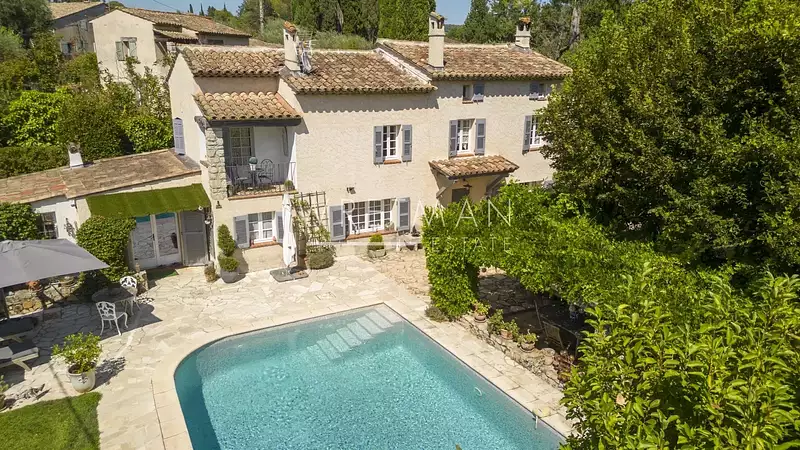 À seulement 5 minutes en voiture du vieux village de Mougins, cette maison datant de 1900, construite sur une ancienne oliveraie, séduit par son authenticité et son atmosphère chaleureuse. Édifiée sur un terrain arboré avec piscine au sel, elle conserve ses matériaux d’époque : sols anciens, portes d’origine et murs en pierres.