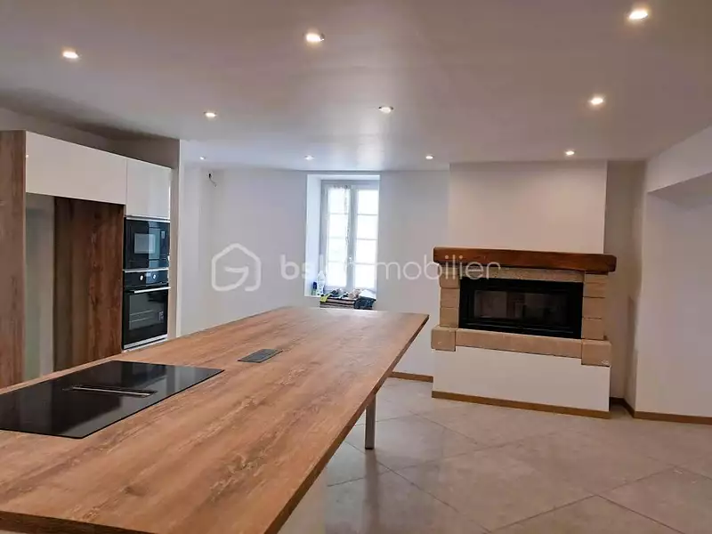 - cuisine ouverte de 33,41m², totalement équipée d'électroménager neuf et n'ayant jamais été utilisé (table de cuisson à induction aspirante 83cm x 51,50cm , four, lave vaisselle, micro-ondes), plan de travail de 3,50m x 1,21m - superbe insert avec pierres anciennes,