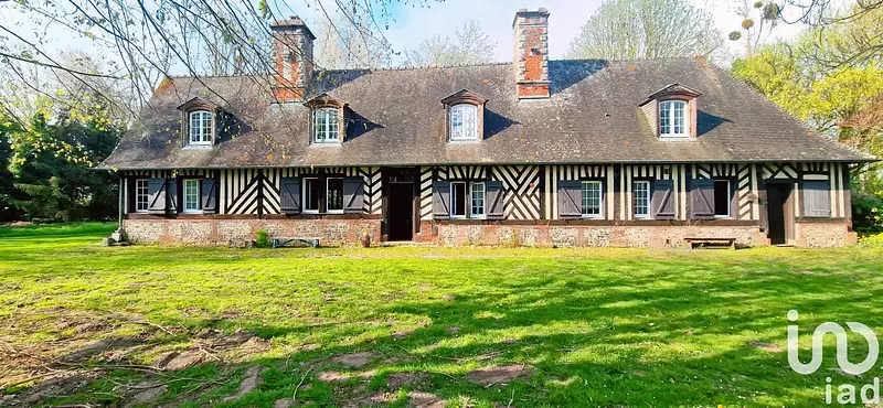 iad France - Florence Besnard vous propose: À moins de 12 minutes de Bernay – Ancien relais de poste de charme entièrement reconstruit avec dépendances sur plus d’un hectare de parc arboré avec de nombreux arbres fruitiers.