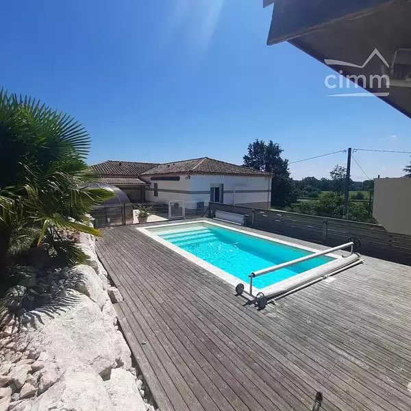 À 15mn d'AGEN, belle maison contemporaine de type V sur un terrain clos de plus d'un hectare avec piscine et spa. Vue panoramique sur la vallée de la Garonne.