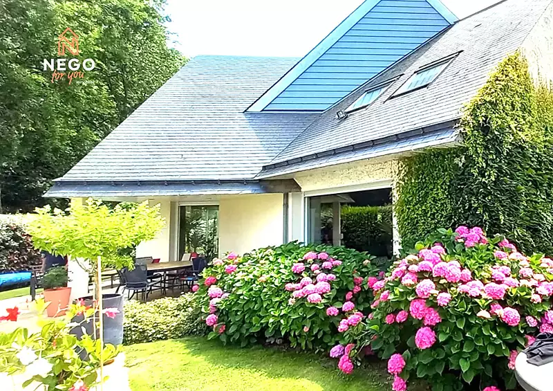 En exclusivité chez Nego For You venez découvrir cette magnifique maison située à 10 mn d'Angers dans le quartier résidentiel du Domaine de L'Etang à Avrillé. Ce bien exceptionnel de 180 m2 dressé sur une parcelle de près de 1000 m2 offre une vue incroyable sur la piscine privée, l'Etang et le parc des Poumons Verts. L'intérieur de cette propriété au style contemporain se distingue par une luminosité omniprésente et un agencement de qualité proposant ainsi un mode de vie confortable et très agréable avec une véritable vie de plain-pied. Dès l'entrée le charme opère avec un vaste salon/séjour (cheminée). Une cuisine semi-ouverte au design sobre et raffiné, une arrière cuisine, une grande suite parentale avec salle de douche ainsi qu'un wc indépendant viennent compléter ce RDC de 120 m2. Après quelques marches d'un bel escalier, l'étage quant à lui propose 4 chambres , une salle de bain avec douche et un wc. Cette étonnante visite continue à l'extérieur avec une belle terrasse pour les moments de convivialité, un jardin soigneusement végétalisé, et une belle piscine. Un double garage, une cave, un grenier viennent compléter le descriptif de ce bien extrêmement rare et de cet endroit vraiment magique. Pour tout renseignement ou demande de visite contacter Eric Jousseau (RSAC : 918 169 327) au O6/66/08/93/57 Les informations sur les risques auxquels ce bien est exposé sont disponibles sur le site Géorisques : www.georisques.gouv.fr (4.00 % honoraires TTC à la charge de l'acquéreur.)