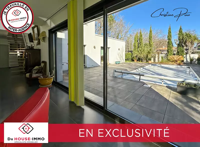 Ici, dans un quartier privilégié, venez découvrir cette maison d'architecte contemporaine construite avec des matériaux de qualité. D'une superficie d'environ 180m2 elle se compose au rez de chaussée d'une grande pièce de vie lumineuse avec cuisine entièrement équipée et aménagée, cellier attenant, trois chambres, salle d'eau et wc. A l'étage, vous trouverez une suite parentale avec salle d'eau et wc ainsi qu'une spacieuse mezzanine ouverte donnant sur salon séjour pouvant être aménagée (bureau, chambre supplémentaire, salle de jeux...) Garage, atelier, local technique et piscine complètent ce bien atypique édifié sur une parcelle d'environ 1000m2.