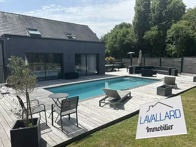 Pavillon individuel de 180 m² avec 4 chambres, sous sol complet/garage, piscine, jardin clos et arboré.