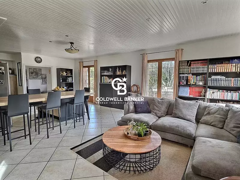 Vous serez immédiatement séduit par sa magnifique pièce de vie de 120 m², baignée de lumière, avec véranda intégrée offrant une vue panoramique sur le jardin arboré. Sa cheminée suspendue en fait un élément de décoration original. La cuisine, entièrement aménagée et équipée, de très belle facture, s’ouvre harmonieusement sur l’espace de vie, idéal pour recevoir en toute convivialité.