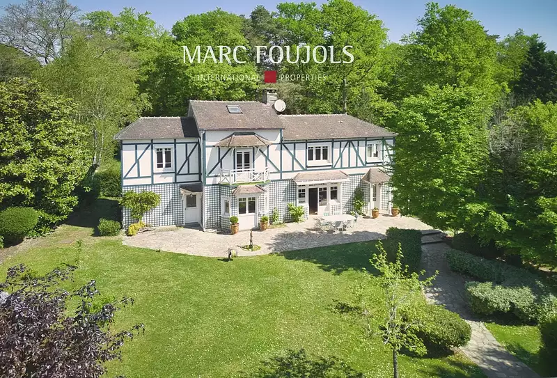 À Bourron-Marlotte, village classé niché dans la forêt de Fontainebleau, cette demeure de charme entièrement restaurée se distingue par ses façades à colombages récemment rénovées, qui lui confèrent un caractère chaleureux et une parfaite harmonie avec son environnement verdoyant.