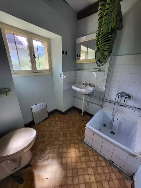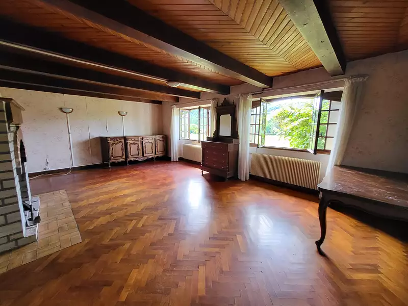 La maison principale est composée, en rez-de-chaussée, d'une grande pièce de vie avec parquet bois et cheminée, d'une cuisine indépendante, d'une salle d'eau et d'une cave. A l'étage se trouve 3 chambres et un bureau ainsi qu'une grande terrasse exposée sud avec vue, accessible depuis le haut de la maison ou par un balcon filant. Chauffage au gaz. Cave indépendante.