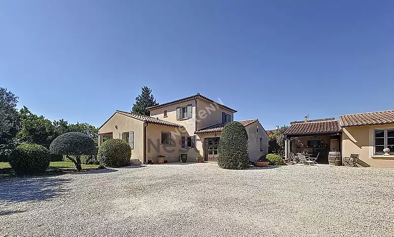 Charme et Confort Absolu à Camaret-sur-Aigues - Maison d'Exception avec Terrain Piscinale Nichée dans un secteur paisible et prisé de Camaret-sur-Aigues, à deux pas des commerces et commodités, cette magnifique maison de 180m² environ offre un cadre de vie idyllique pour les familles et les amoureux de tranquillité. Au Rez-de-chaussée vous découvrirez : - Un hall d'entrée accueillant avec placard intégré. - Un vaste salon-séjour de 60m² baigné de lumière, agrémenté d'une cheminée chaleureuse et s'ouvrant sur une terrasse ensoleillée. - Une cuisine aménagée et équipée, parfaite pour les repas en famille ou entre amis, avec un espace dînatoire convivial. - Deux chambres spacieuses (11m² et 23m²), offrant confort et intimité. - Une salle d'eau moderne avec WC. - Une buanderie pratique de 13 m2 - Un espace chaufferie. A l'Étage vous trouverez : - Un palier desservant deux chambres supplémentaires (11m² et 13m²). - Une salle de bains. - Un dressing fonctionnel. - Un WC séparé. En ce qui concerne les espaces extérieurs : - Une terrasse de 60m² environ, idéale pour les moments de détente et les repas en plein air. - Un jardin paysager de 1100m² environ, offrant un espace de jeu et de relaxation. - Un bureau indépendant avec son préau et sa terrasse (avec possibilité d'aménagement). - Un abri /préau véhicule. - Un abri de jardin. - Terrain piscinable. Les atouts de cette propriété : - Maison en parfait état, entretenue avec soin. - Chauffage au sol et climatisation pour un confort optimal en toute saison. - Matériaux de qualité, gage de durabilité et d'esthétique. - Environnement calme et résidentiel, idéal pour les familles. - Portail électrique, assurant sécurité et praticité. - Système d'alarme par vidéo protection. N'hésitez pas à nous contacter pour plus d'informations ou pour organiser une visite.