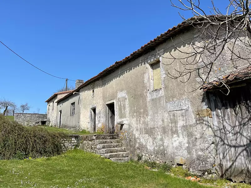 Située dans un environnement calme et verdoyant, cette très ancienne maison à usage d'habitation offre un beau potentiel pour les amateurs de rénovation. Entièrement à rénover, elle permet de concevoir une habitation d'environ 180 m² selon vos envies et vos projets. Un terrain attenant de 6 100 m² vient compléter l'ensemble, idéal pour profiter d'un bel extérieur, développer un jardin ou accueillir des animaux. Plusieurs dépendances sont également présentes dont un grand auvent de 85 m² (non attenant), idéal pour le stationnement de véhicules, ou pouvant être aménagé en écurie. L'électricité et l'eau sont déjà raccordés grâce aux compteurs présents sur place. Le DPE n'a pas été effectué car la maison ne dispose d'aucun systeme de chauffage. À proximité des communes de Blanzac et Montmoreau, cette propriété bénéficie d'un cadre paisible, tout en restant à seulement 25 minutes au sud d'Angoulême. Un bien rare pour ceux qui souhaitent créer un lieu de vie unique, avec de belles possibilités d'aménagement. Contactez votre Agent AXO - L'immobilier Actif au 06 88 15 53 47, Jézabel MERCIER (EI) Agent Commercial RSAC 809.293.772 Angoulême. Plus d'informations sur (réf. 8500280542). Honoraires : 6 000 € TTC (9,23 %) inclus charge acquéreur (65 000 € hors honoraires). Les informations sur les risques auxquels ce bien est exposé sont disponibles sur le site Géorisques : https://www.georisques.gouv.fr/