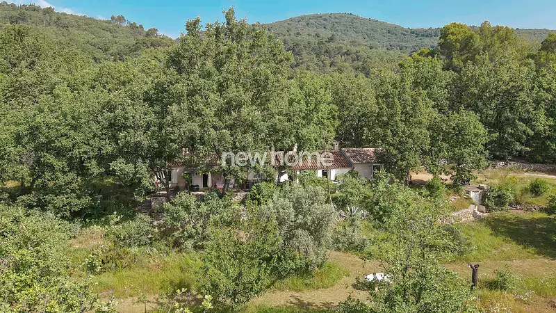 Maison sur 2 ha de beau terrain en larges restanques, idéal pour des amoureux de la nature et/ou pour chevaux. Maison principale environ 155m2 sh: pièce à vivre 40m2, cuisine américaine, 3 chambres 2 salles d'eau, 2 WC, buanderie/chaufferie, cellier et une pièce 35m2 à achever à votre goût. Pompe à chaleur fin 2022 + 2 cheminées fonctionnelles. Fenêtres double vitrage 2022-2023. Bastidon indépendant en pierres 25m2 sh, totalement fonctionnel pour famille, amis ou gîtes avec climatisation réversible. Chalet/rangement en bois. Propriété situé plein sud. Vue dégagée. Belle piscine. Plein de possibilités. Vie champetre, bucolique familiale assurée. Sans Vis à vis au calme absolut. 1h de Nice aéroport, 40 min de la mer, Golf 5 étoiles, vol à voile et montagnes. Très belle emplacement. A voir!