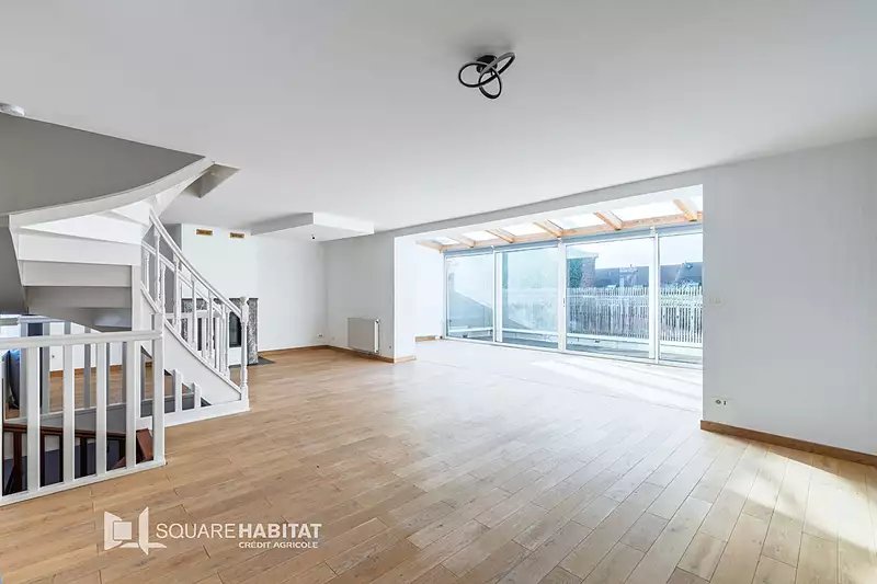 En exclusivité, maison de type "loft" avec grand jardin au centre d'un village prisé des Weppes, à proximité des petits commerces et de la N41. Développée sur 180m² hab, cette maison propose un hall d'entrée en rez-de-chaussée menant à un plateau supérieur constitué d'une pièce à vivre traversante sur parquet massif de 80m², avec cuisine ouverte, donnant sur une terrasse avec belvédère sur un large jardin arboré et soigné. Une chambre avec terrasse privative à l'abris des regards, une salle de bains, une buanderie, une chaufferie et un WC complètent cet étage. Au second, un palier distribue deux chambres avec plancher authentique, un dressing ainsi qu'une seconde salle de bains et un second WC. En rez-de-chaussée, un troisième espace nuit se compose d'un grand bureau menant à une suite parentale de 22m² avec ouverture sur jardin intimiste paysager, communiquant avec le jardin principal. Une vaste terrasse, un carport ainsi que deux places de stationnement privatives sécurisées par un portail électrique constituent des atouts indéniables des extérieurs de cette charmante propriété. L'organisation de l'espace laisse la possibilité de convertir facilement les pièces du RDC en studio avec jardin et accès indépendant "Les informations sur les risques auxquels ce bien est exposé sont disponibles sur le site Géorisques : www.georisques.gouv.fr"