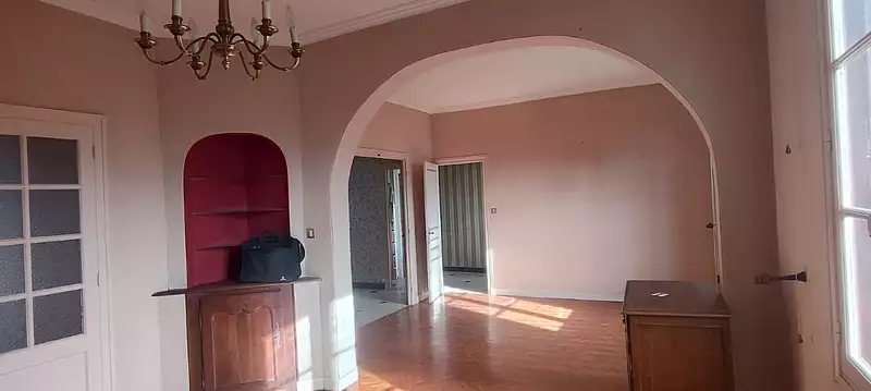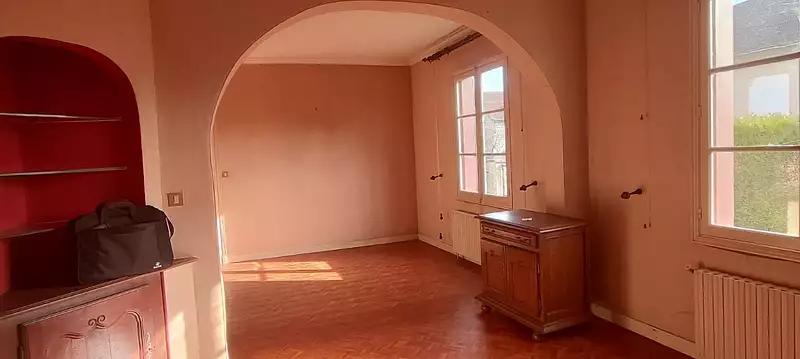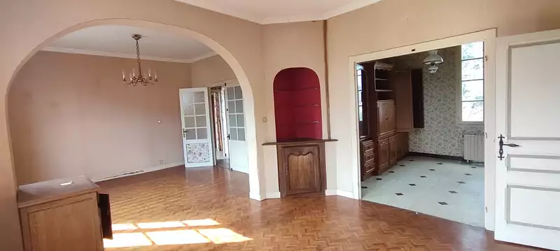Jolie Maison de caractère sur 2 niveaux 180 m² habitables à rénover composée: D'un beau séjour de 30 m², d'un salon de 11,50 m² pouvant être transformer en cuisine ( arrivée d'eau sur place), 4 chambres d'une surface entre 12 et 14 m² les sols sont en plancher bois en bon état, salle de bains, wc.