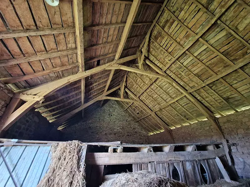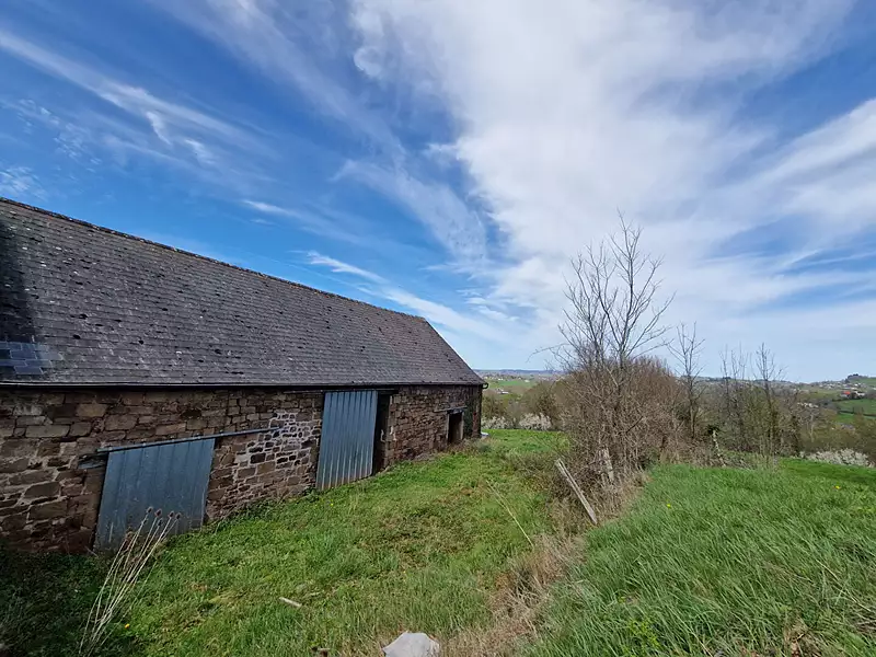 Dans un secteur calme, sur les hauteurs grange construite en pierres couverte en ardoises à aménager environ 180m² au sol ( 9 mètres par 20). Assainissement individuel à créer, eau et électricité en bordure de terrain. Le bâtiment sera vendu avec 5000 m² de terrain . (10.00 % honoraires TTC à la charge de l'acquéreur.)