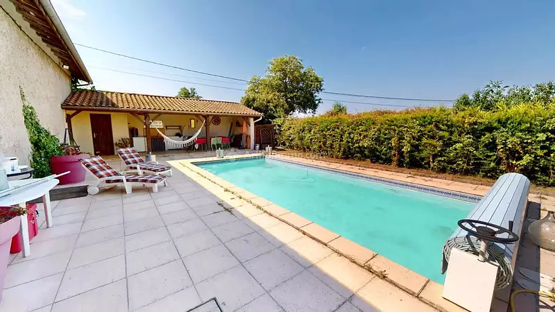 Maison individuelle - lieudieu exclusivite dans votre agence centrimmo 10 min de saint jean de bournay et 12 min de la côte saint andré. située dans un environnement paisible, cette charmante maison de 180 m² environ habitable répartis sur deux niveaux vous séduira par son charme, ses extérieurs et son fort potentiel. elle se compose, au rez-de-chaussée, d'un vestibule, d'un séjour lumineux donnant côté piscine équipé d'un poêle à bois, d'une cuisine séparée équipée, d'une buanderie/chaufferie, ainsi que d'une salle d'eau avec wc. À l'étage, quatre chambres dont une traversante (deux chambres sont équipées de climatiseurs réversibles), une salle de bains (à finir d'aménager), ainsi qu'un second wc séparé. le tout est implanté sur une parcelle de 2 500 m² environ dont une partie cloturée pouvant recevoir des animaux. beaux et intéressants espaces de vie extérieurs : terrasse, piscine, pool house avec wc, atelier et abris de voiture complètent ce bien. un cadre idéal pour une vie de famille au calme. les informations sur les risques auxquels ce bien est exposé sont disponibles sur le site géorisques : www.georisques.gouv.fr les honoraires sont à la charge du vendeur pour tout renseignement complémentaire contactez l'agence au 04 74 58 50 03 -
