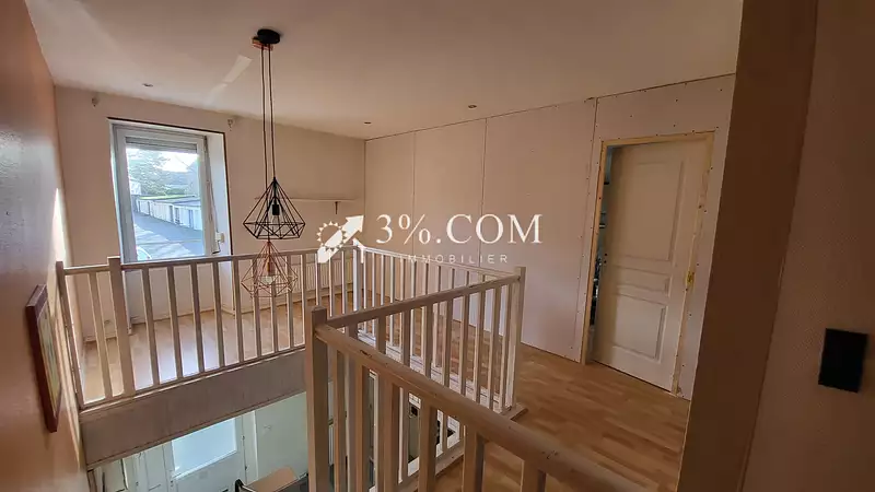 Au premier étage, un vaste palier dessert une chambre, un dégagement avec placard et un espace parental avec salle d'eau et WC.
