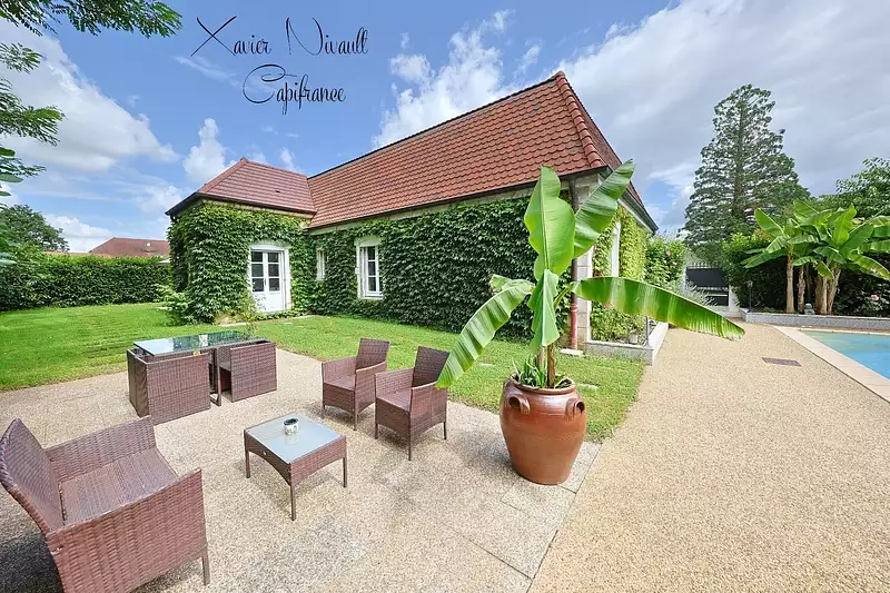 Ainsi vous bénéficiez d'une belle cour, de charmants espaces extérieurs avec terrasse, et d'une magnifique PISCINE en FAIENCE en POINTE DE DIAMANT avec son espace Pool House !
