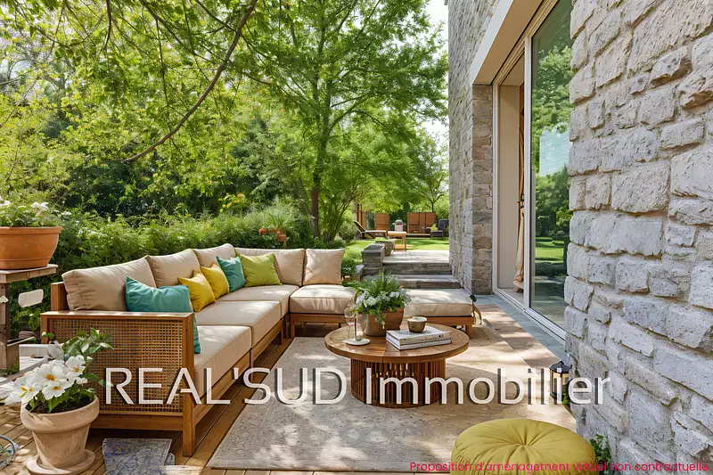 Bénéficiant d'un beau jardin arboré pourvu de nombreuses essences, la maison dispose d'un vaste séjour avec belle hauteur sous plafond, poutres apparentes, cheminée et plusieurs ouvertures sur le jardin, une cuisine semi ouverte, un 2e salon transformable en chambre ainsi qu'une grande salle de bain et wc. A l'étage, nous retrouvons 3 chambres spacieuses, dont 2 ouvrant sur une petite terrasse, ainsi qu'une salle d'eau et un wc séparés. Pour votre confort, vous profiterez également d'un garage de 25 m2 et la possibilité de stationner plusieurs véhicules sur le terrain. Beaucoup de charme et de cachet pour ce bien aux multiples possiblités grace à ses volumes, jardin et dépendance. Pour plus de renseignements contactez-nous au 06 46 10 02 75 et découvrez ce bien en détail sur notre site internet REALSUDIMMOBILIER.