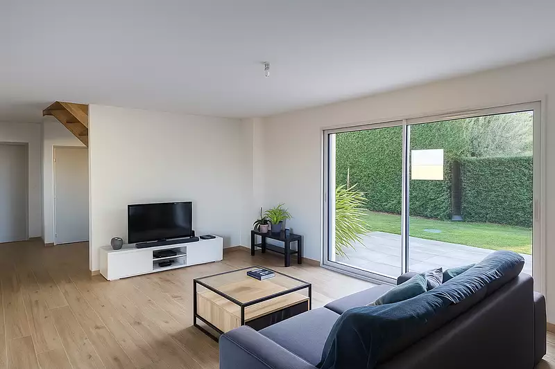 Au rez-de-chaussée : Une vaste pièce de vie de 50 m2 baignée de lumière, avec cuisine équipée moderne Deux chambres, dont une suite parentale avec salle d’eau