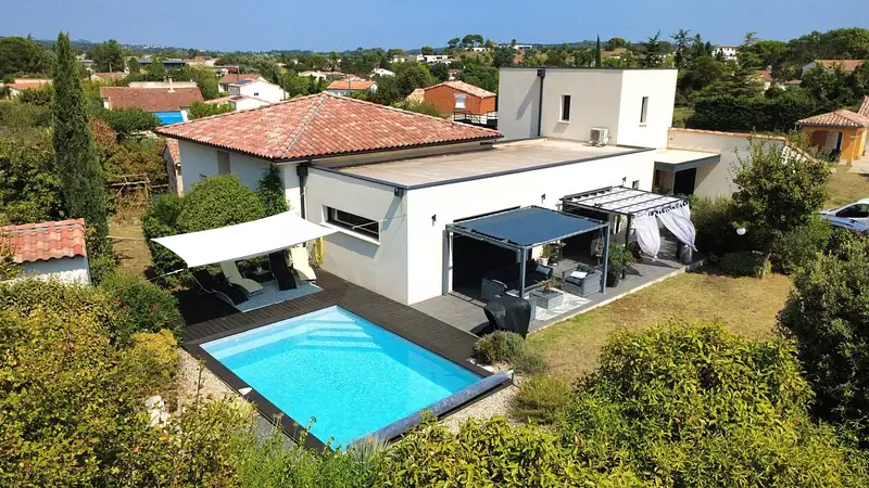 Cette maison contemporaine avec piscine est un véritable havre de paix où il fait bon vivre et recevoir. Venez découvrir votre futur chez-vous où confort et sérénité se rencontrent harmonieusement.