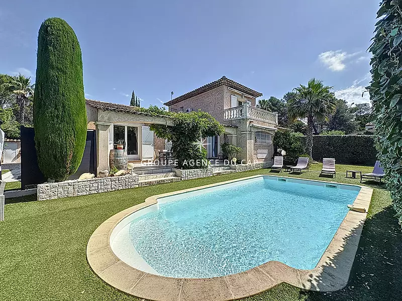 Saint-Raphaël quartier recherché en impasse, villa de construction traditionnelle provençale de 6 pièces, séjour de 65 m² donnant sur terrasse et piscine au sud, 2 chambres et 2 salles de bain de plain pied dont une en master, à l'étage une chambre avec terrasse et salle d'eau. En annexe : local piscine, abris voiture et garage de 20m² . Le plus de cette villa est un sous-sol total aménagé... Prenez rendez-vous !