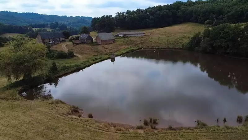 Une grange en pierre, couverte en ardoise de 230 m² sur deux niveaux, une grange plus petite environ 80 m² idéales pour le stockage, une stabulation et un étang complète la propriété de 59 hectares.