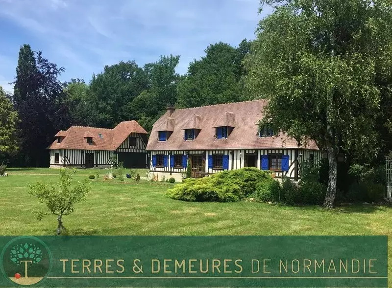 Nichée au cur de la vallée de la Charentonne, à 5 minutes du village de Broglie et de ses commodités et à 10 km de Bernay et de sa gare SNCF, cette ravissante propriété normande offre tout le confort pour une vie de famille épanouie. Maison principale d'environ 125 m² : L'entrée cathédrale fait ressortir le charme de cette cette belle normande. La spacieuse pièce de vie de 51 m², orientée sud, bénéficie d'une luminosité exceptionnelle. Le salon avec sa cheminée et son poêle, la salle à manger et la cuisine entièrement aménagée et équipée forment, avec les poutres chevillées et les tomettes rouges au sol, un espace chaleureux et accueillant. On retrouve au rez-de-chaussée un WC avec lave-mains et un cellier de 10 m², idéal pour le rangement. À l'étage, la maison comprend trois confortables chambres et leur salle de bain disposant de deux meubles vasques, une baignoire et une douche. WC séparé. Elle offre également la possibilité d'aménager une quatrième chambre au rez-de-chaussée en lieu et place du cellier. En complément, une maison d'amis d'environ 55 m² prête à être utilisée après quelques finitions : au rez-de-chaussée, on retrouve une cuisine ouverte sur séjour avec un conduit de cheminée. A l'étage, un palier dessert deux chambres, une salle d'eau et un WC séparés. Cette dernière dispose d'une remise / vide sanitaire de 2 m². Idéale pour recevoir ou créer un gîte. Son parc entretenu, clôturé et arboré de 5000 m² offrant un cadre idéal pour profiter des belles journées normandes. Un préau d'environ 40 m² est présent sur le terrain et permet un espace de stockage supplémentaire. Un garage spacieux de 34 m² permet de stationner plusieurs voitures tout en offrant un bel espace de stockage. Agent commercial : CAMILLE VUYLSTEKE RSAC N° 930 355 177 Montant estimé des dépenses annuelles d'énergie pour un usage standard : entre 1 930 et 2 670 par an. Prix moyens des énergies indexés au 01/07/2024 (abonnement compris). Nous vous rappelons que suite à l'article l.561-5 du code monétaire et financier, la copie de la pièce d'identité de tous les visiteurs vous sera demandée avant la visite. Honoraires : 5 % TTC inclus charge acquéreur (351 000 hors honoraires) Agent commercial : CLAUDE RIPEAUX RSAC N° 900 900 838