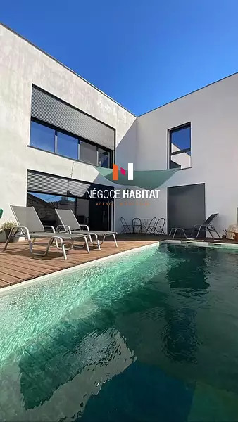 QUARTIER JEAN JAURES CENTRE VILLE VILLA UNIQUE DE STANDING récente de 182m2, très belles lignes contemporaines, elle bénéficie de très grands volumes en offrant une qualité de vie au quotidien, vous entrez par le portail motorisé avec un accès aux deux garages, un jardin exotique avec de très belles compositions, espace cuisine d'été barbecue, coin repas pour vos magnifiques soirées entre amis. Une belle porte d'entrée vous accueille avec de nombreux dressings, accès aux trois garages de 98m2, à l'étage vous accédez dans une magnifique pièce à vivre, salon, séjour, cuisine équipée avec de nombreux rangements, îlot central, électro-ménagers de qualité, une grande baie vitrée à galandage vous apporte une grande luminosité accédant sur une belle terrasse avec piscine 7 x 2.50 décorée avec goût, une chambre parentale très spacieuse avec dressing, salle d'eau donnant également sur la terrasse, à l'étage supérieur, 3 chambres dont deux avec dressings, deux bureaux, salon de lecture suspendu avec home cinéma. Prestations de haute gamme, un havre de paix et de quiétude pour profiter de la proximité du CENTRE VILLE ET DES COMMERCES. Pompe à chaleur plancher chauffant et gainable réversible. Ne tardez pas à découvrir de ce bien exclusif !!! CC3644 Tarif 890000€ dont frais d'agence forfaitaire charge vendeur compris. Vous pouvez consulter le reportage photos sur notre site Contact Christine CARLIER 06 14 20 38 74 (agent commercial immatriculé au RSAC de Nîmes (No324023662) mail NEGOCE HABITAT 0499771125 117 Av du Mas de Sapte 34130 Saint-Aunès. Carte professionnelle : CPI 3402 2017 000 017 628.