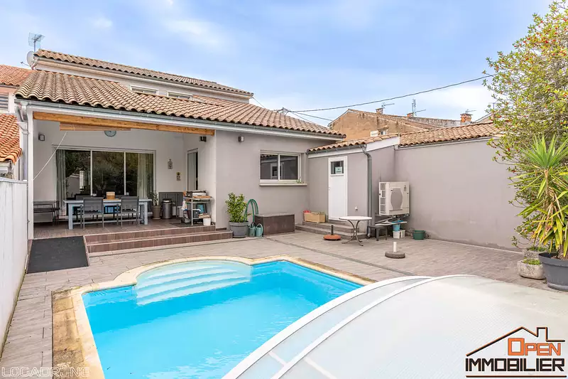 Agencement Rez-de-chaussée : Entrée ouvrant sur une vaste pièce de vie lumineuse de près de 70 m2 compenant une cuisine moderne entièrement équipée, un salon et une salle à manger, une Suite parentale avec salle d’eau, WC et penderie, un Bureau et une Buanderie. Étage : une Salle de bains, 3 chambres dont une seconde suite parentale avec dressing et salle d’eau privative Sous-sol : une Cave Côté extérieur vous pourrez profiter d'une agréable terrasse couverte donnant sur le jardin intimiste ainsi que la piscine parfaitement intégrée dans un environnement soigné et paysagé. Prestations de qualité : Rénovation complète en 2014, Excellente isolation, Menuiseries double vitrage & volets roulants solaires centralisés, Chauffage au sol par pompe à chaleur, Climatisation réversible, Piscine 9 × 4 m (liner récent), stationnements privés...